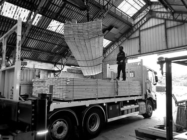 Livraison sur chantier par camion-grue pour plus d'efficacité.