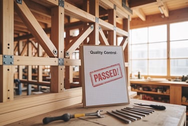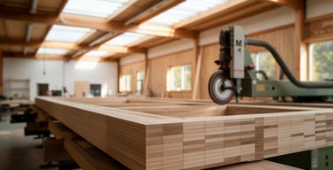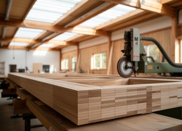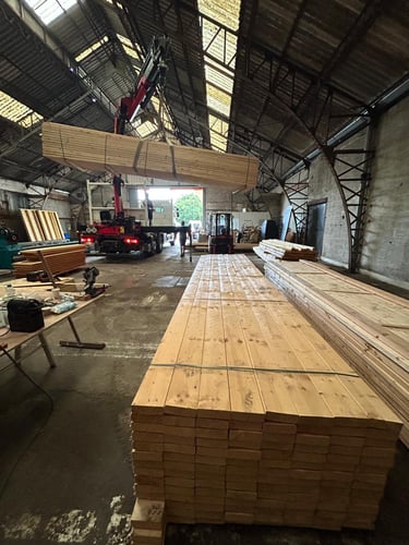 Notre atelier de Trilport (650 m²) est équipé de la machine M4 Macdiffusion, permettant un taillage et un assemblage de haute précision. Chaque mur, chaque charpente est fabriqué sur mesure pour répondre aux normes les plus exigeantes, avec une exigence constante de qualité.