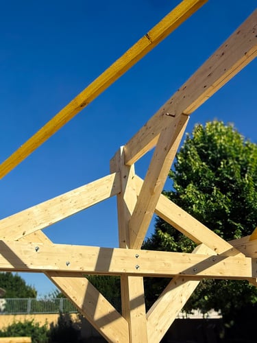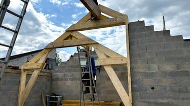 Nos équipes de compagnons charpentiers assurent la pose de votre maison ou extension directement sur chantier. La rigueur technique et le soin apporté aux finitions garantissent une structure durable, performante et esthétique, prête à être habitée.